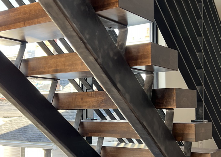 For spirals we can incorporate pre-fabricated elements, we offer custom welding and forging, and speciality railings. Fotos show one project in various stages.