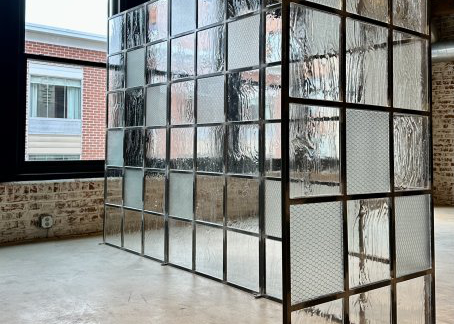 In a collaboration with Emerald Art Glass in Pittsburgh, we offer custom steel windows. The work can include custom hardware and stained glass or speciality glass. We can include color sheets laminated within the double layer of safety glass windows. Cutting and polishing the lines into the panes results in patterns that are worked directly into the glass and reflect with prism-like effects.