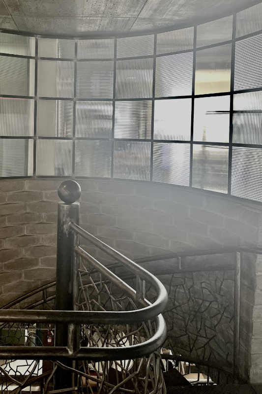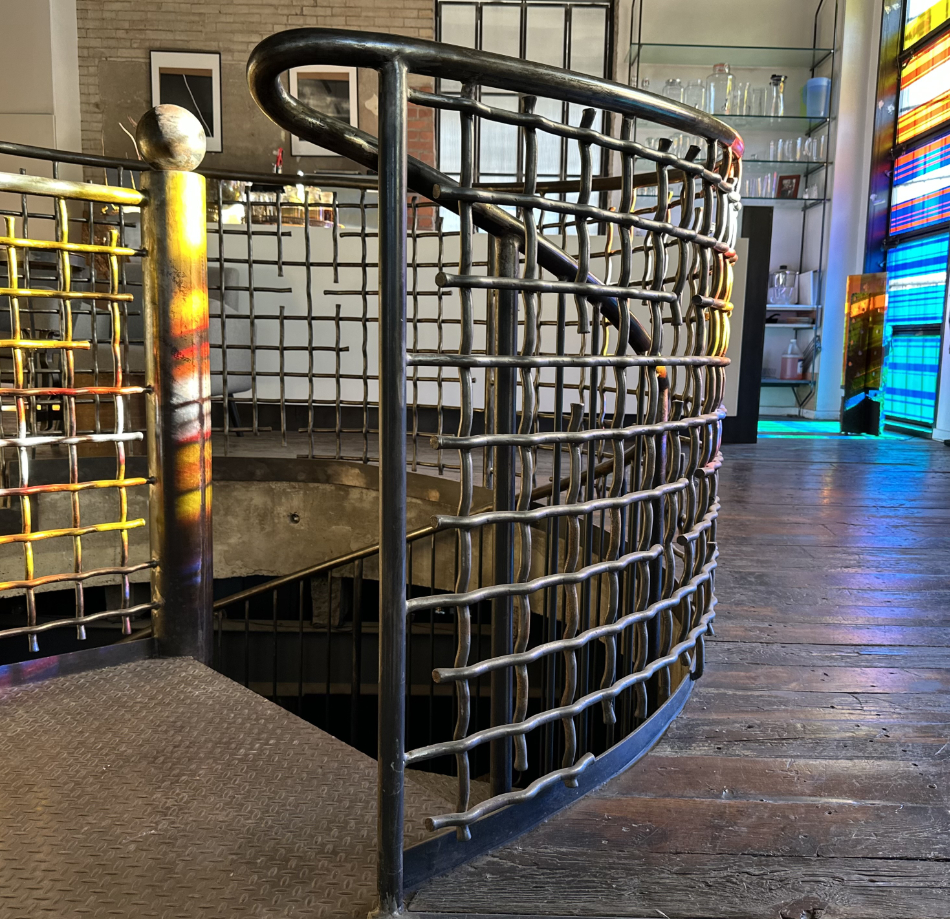 Escape ramps and railings, fire door access - can all be custom build. If desired, with your design ideas. The doors can include fire-resistant glass and also sturdy burglary-resistant steel constructions with glass, to allow for daylight; also with translucent-only or patterned glass. A collaboration with Emerald Art Glass in Pittsburgh.
